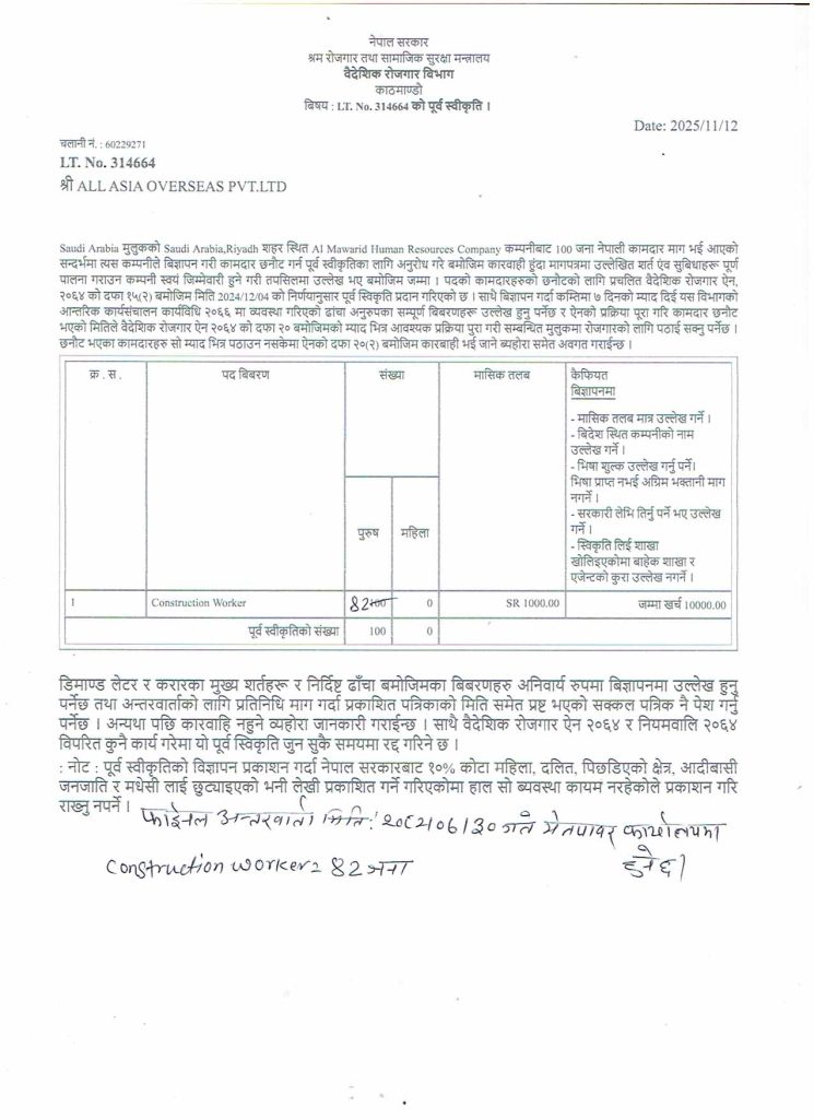 Al Mawarid Recruitment Company.(final interview on 2082-07-26)at manpower office