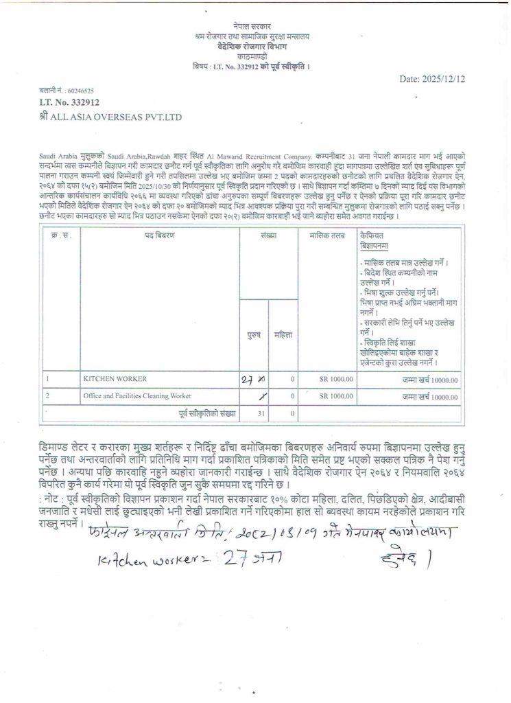 Al Mawarid Recruitment Company.(final interview on 2082-09-01)at manpower office