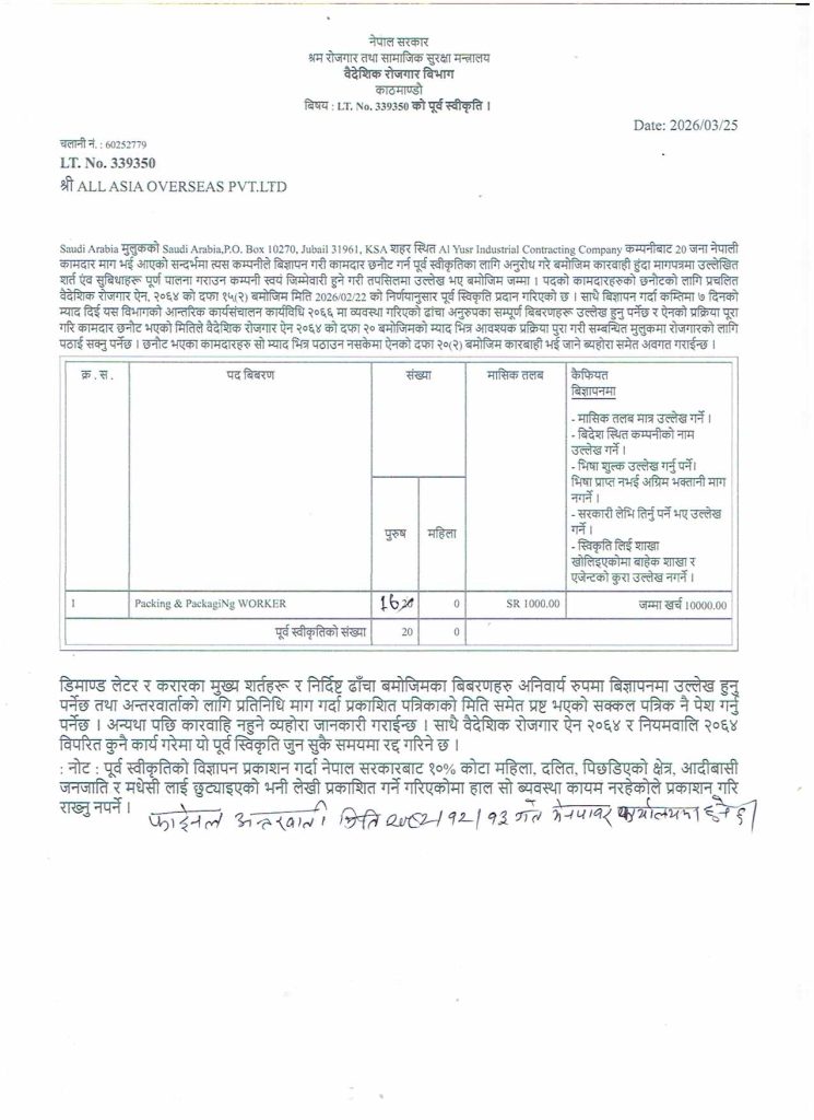 Al Mawarid Recruitment Company.(final interview on 2082-12-13)at manpower office