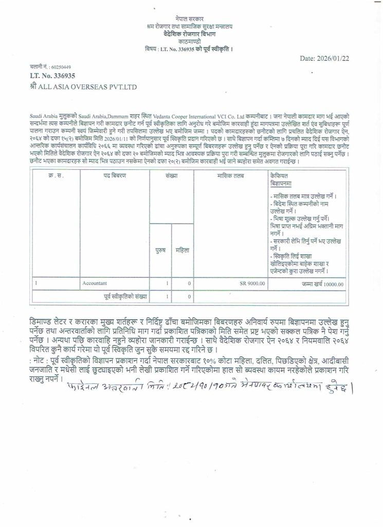 Vedanta Cooper International VCI Co. Ltd(final interview on 2082-10-10)at manpower office